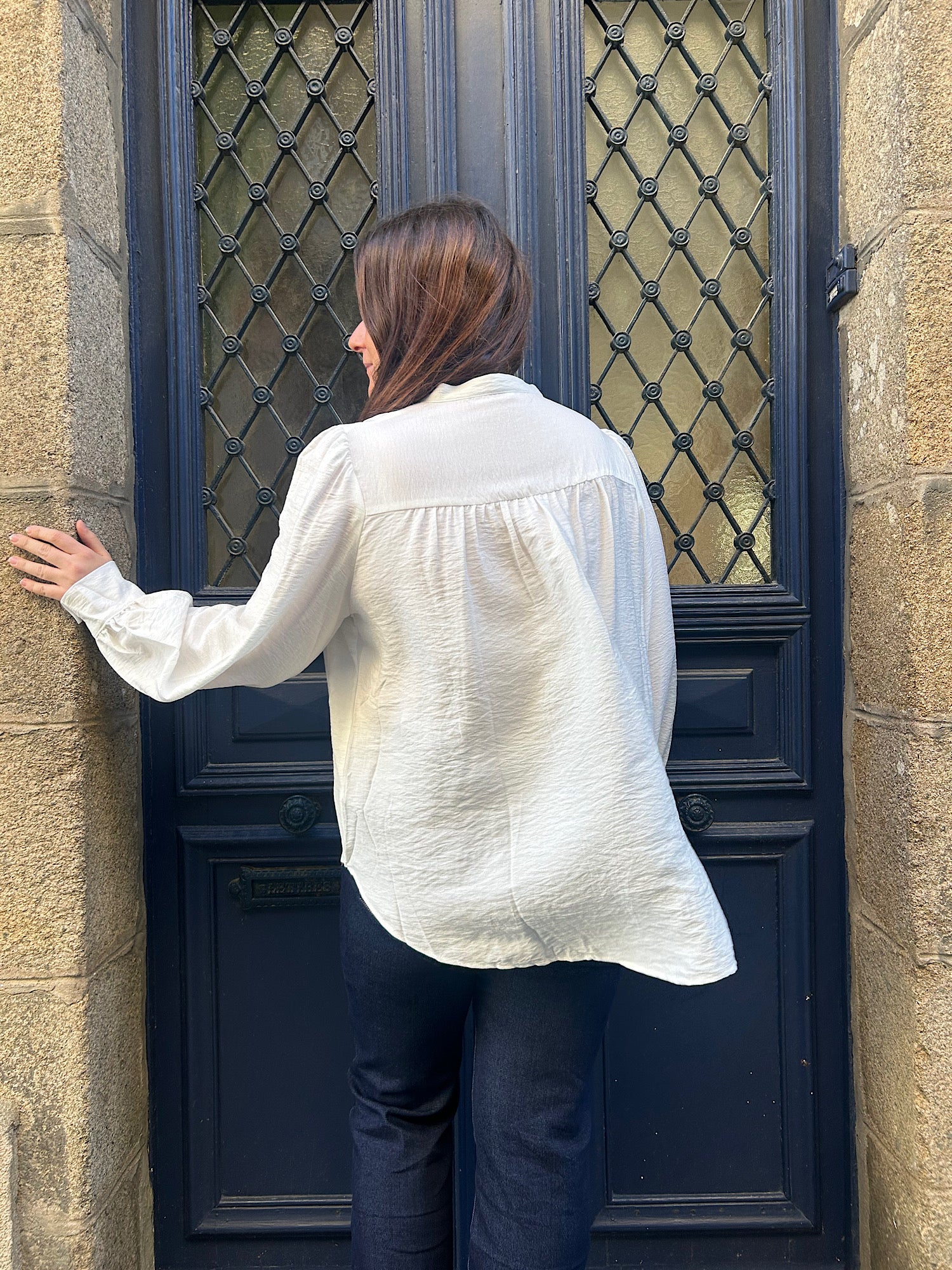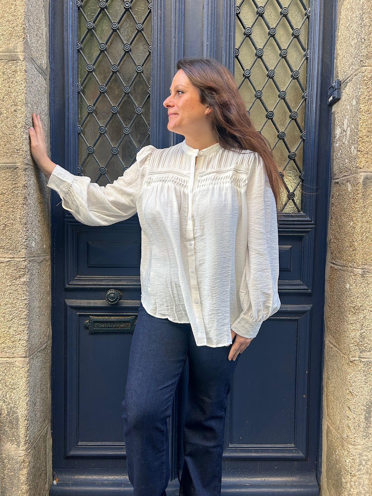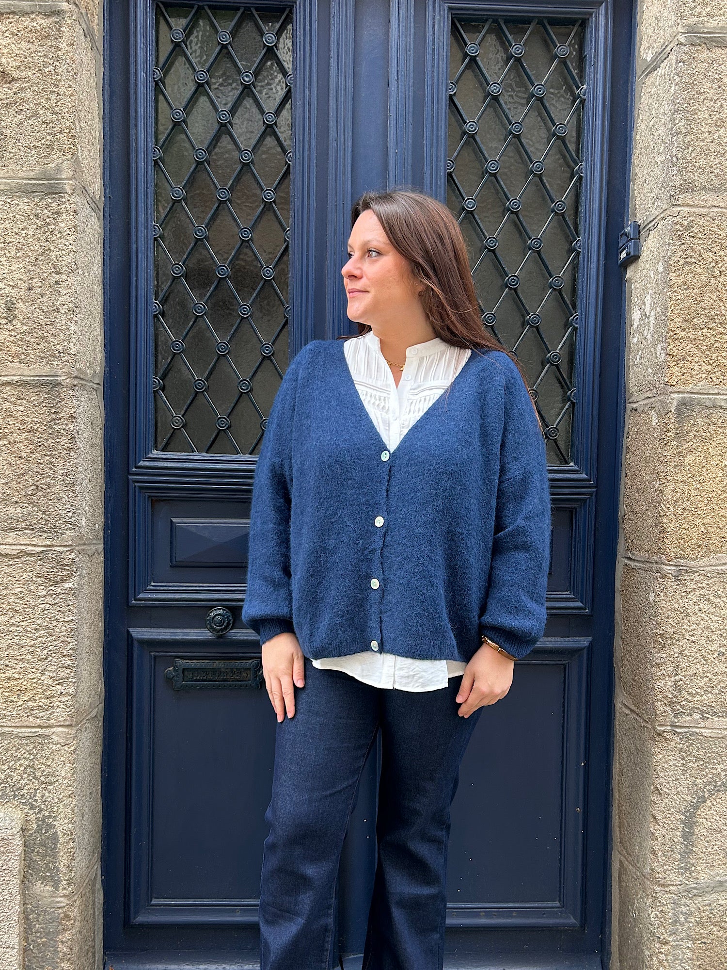 Complètez votre look avec le jean Eugene brut et le gilet Georginette marine