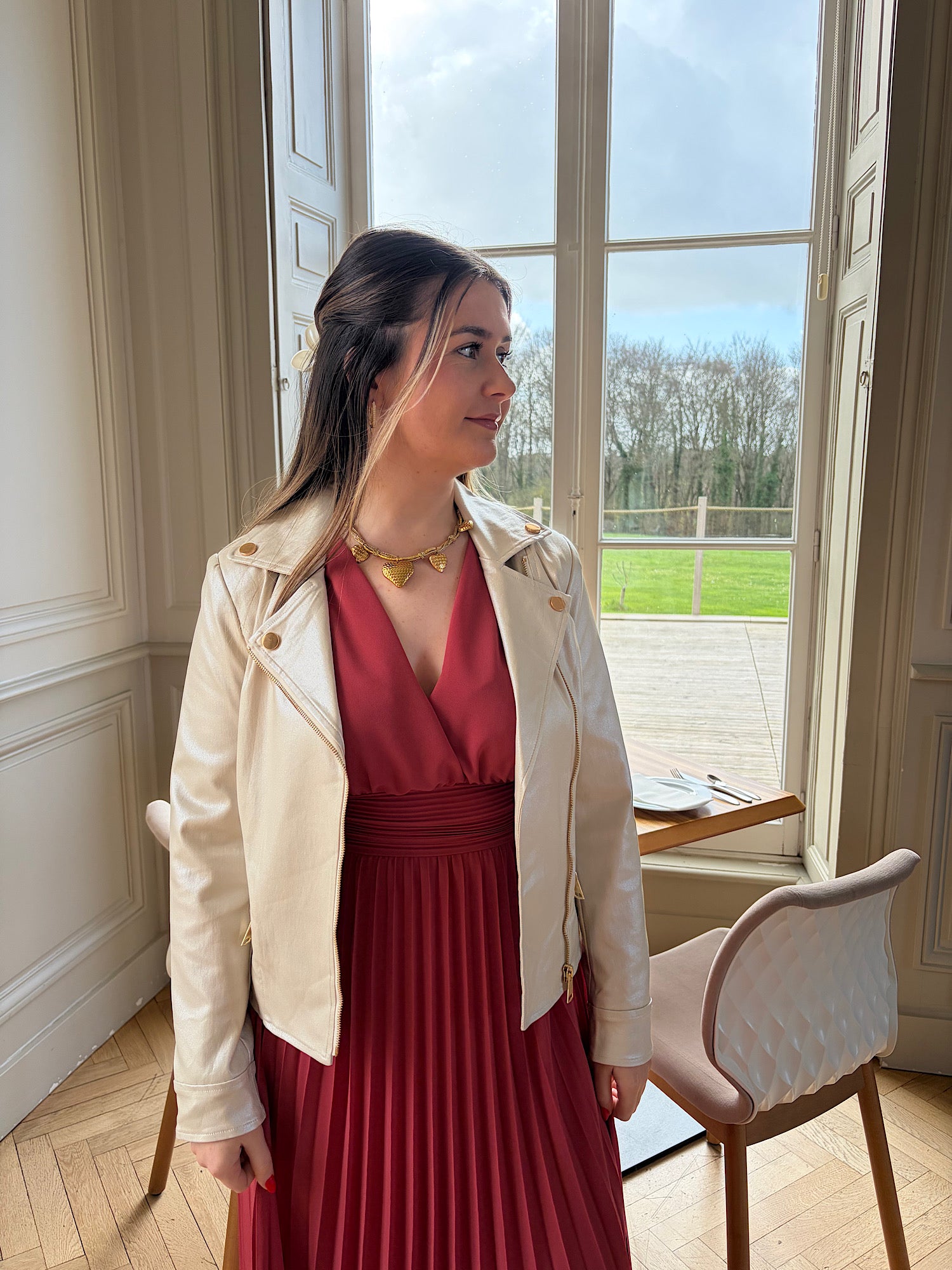 Fermeture éclair et boutons dorés