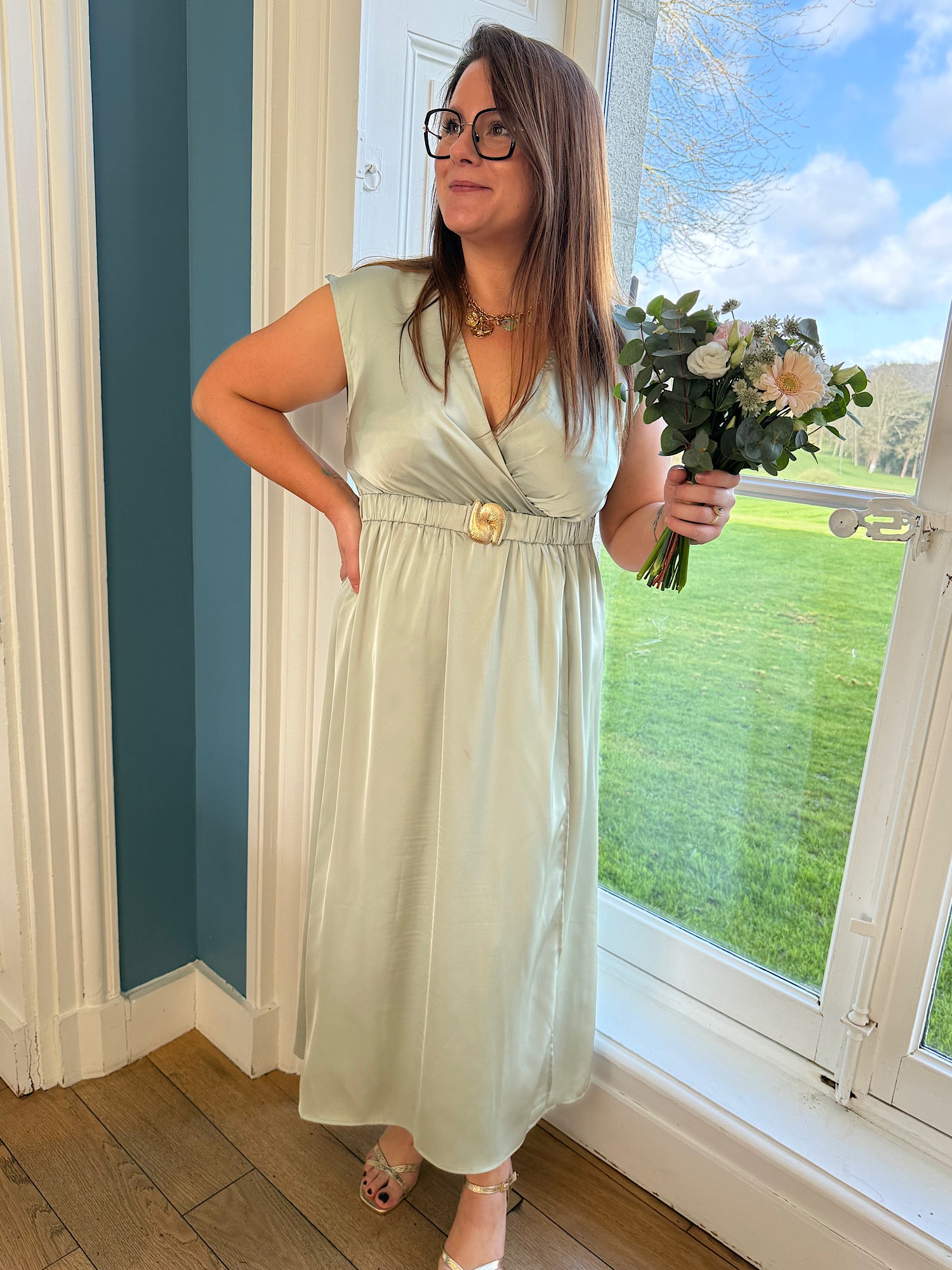 Ceinture intégrée avec boucle dorée