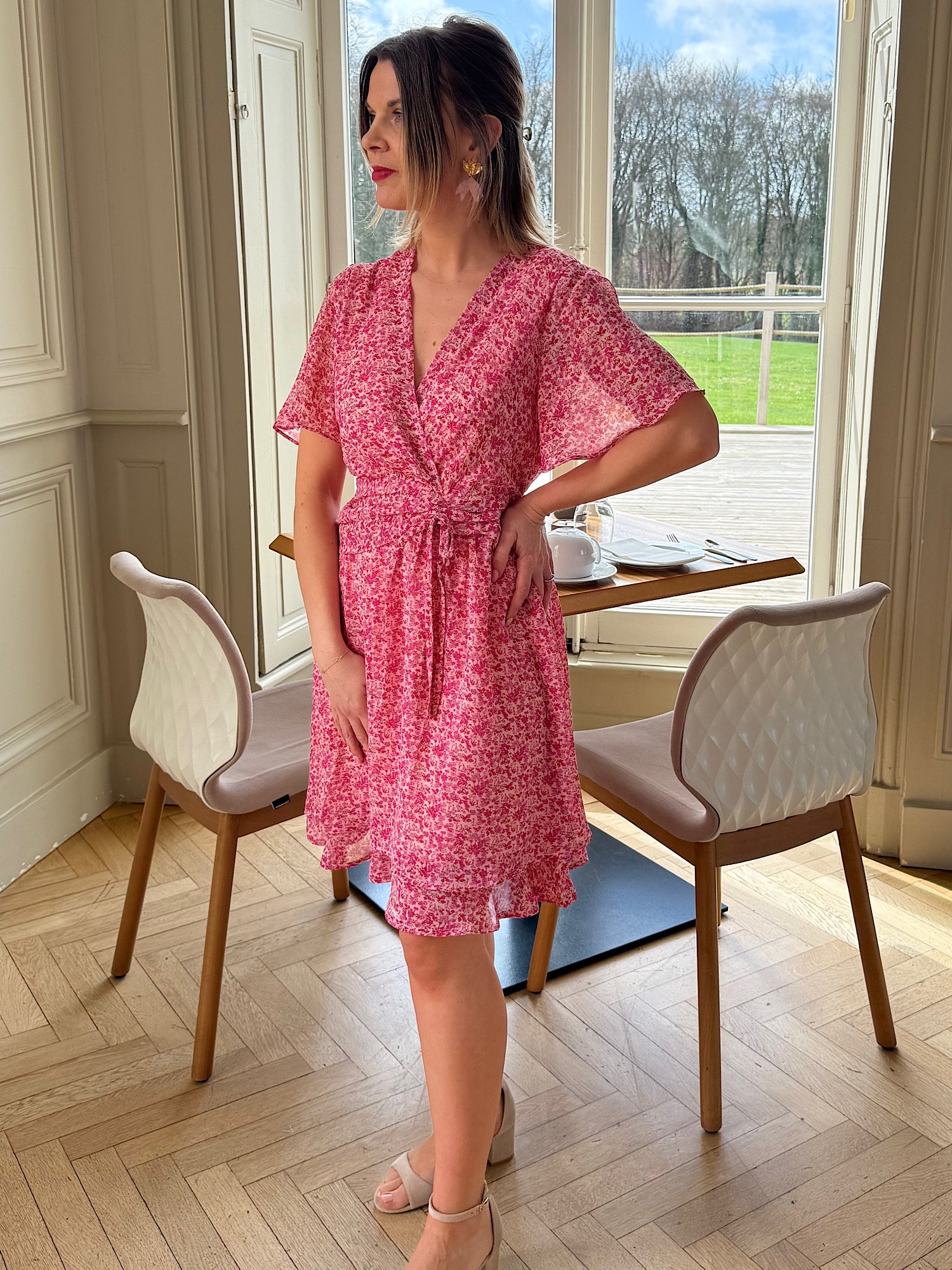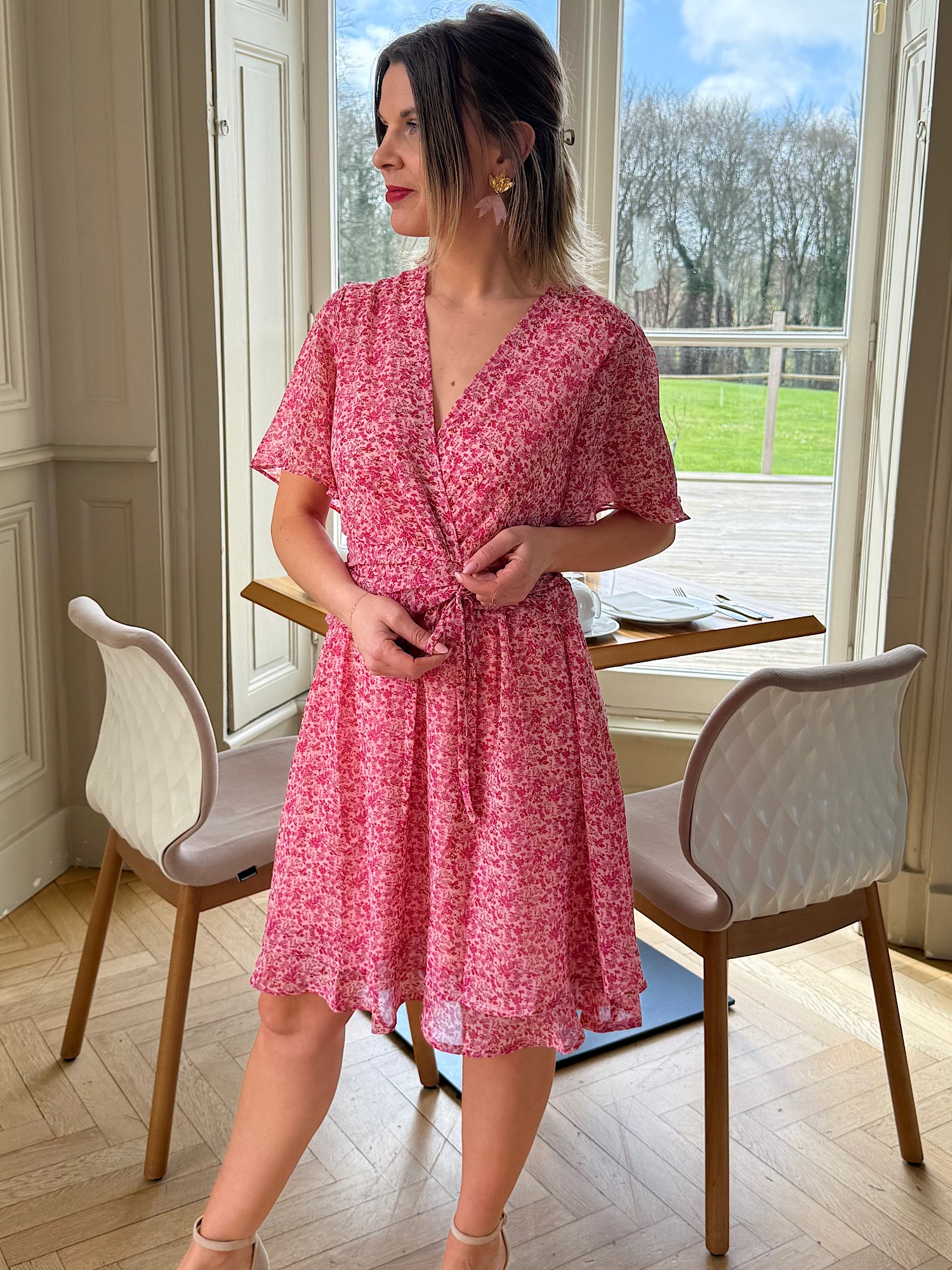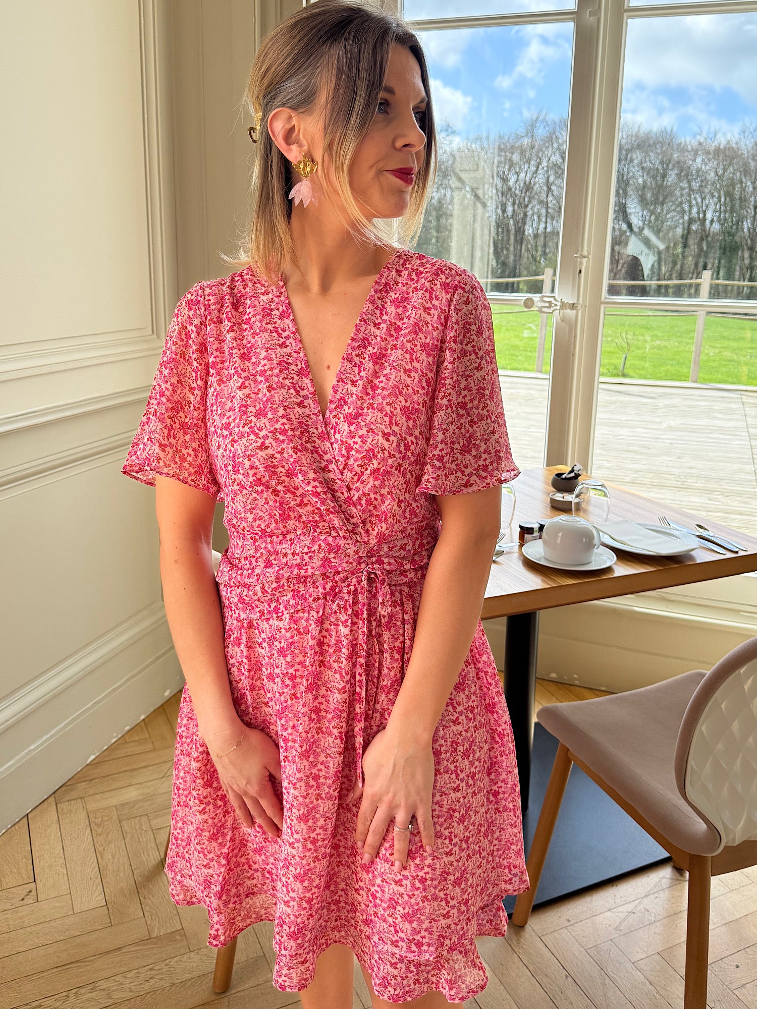 Imprimé fleuri sur fond rose