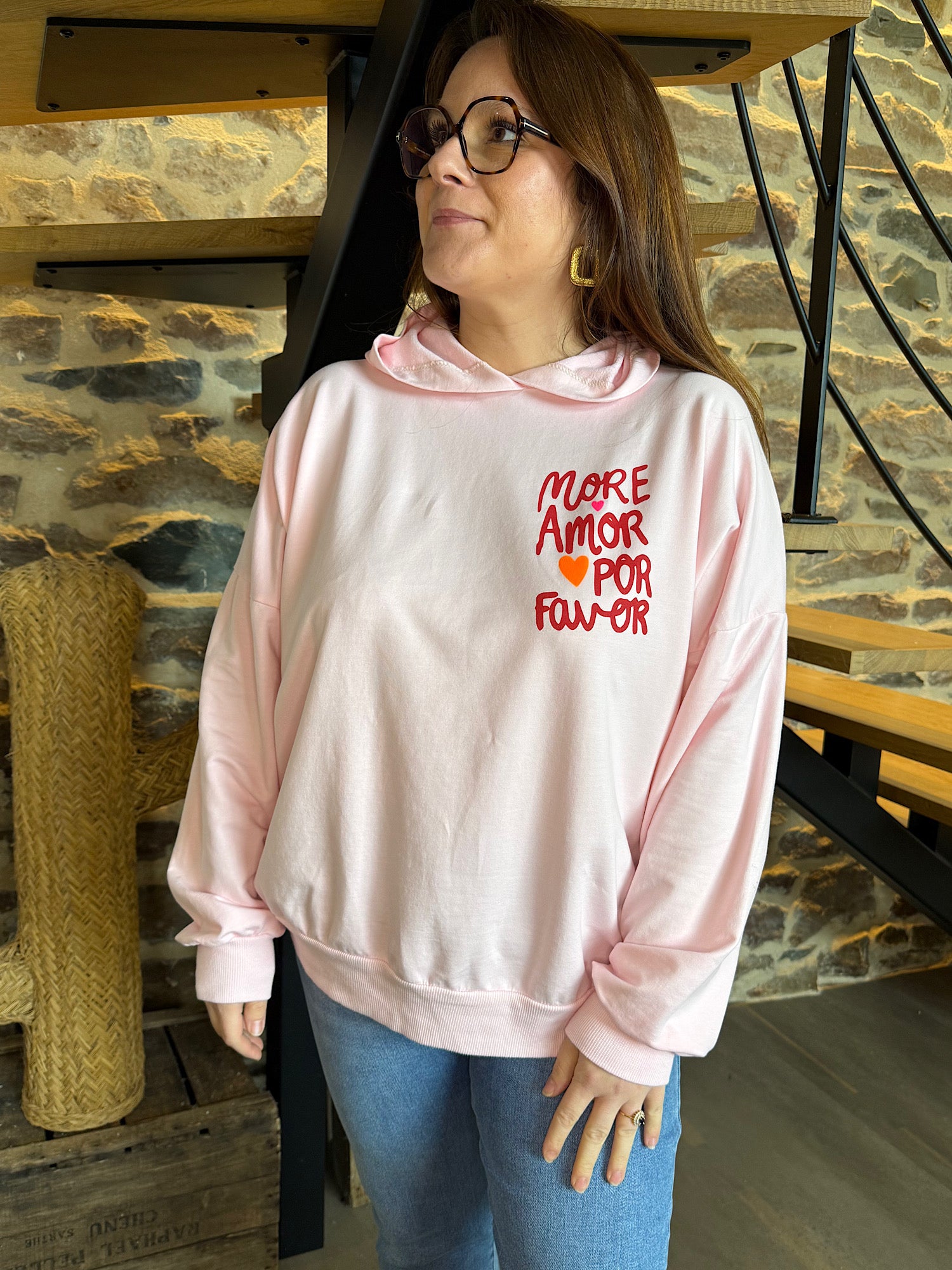 Message imprimé " MORE AMORE POR FAVOR" dans le dos et sur le devant